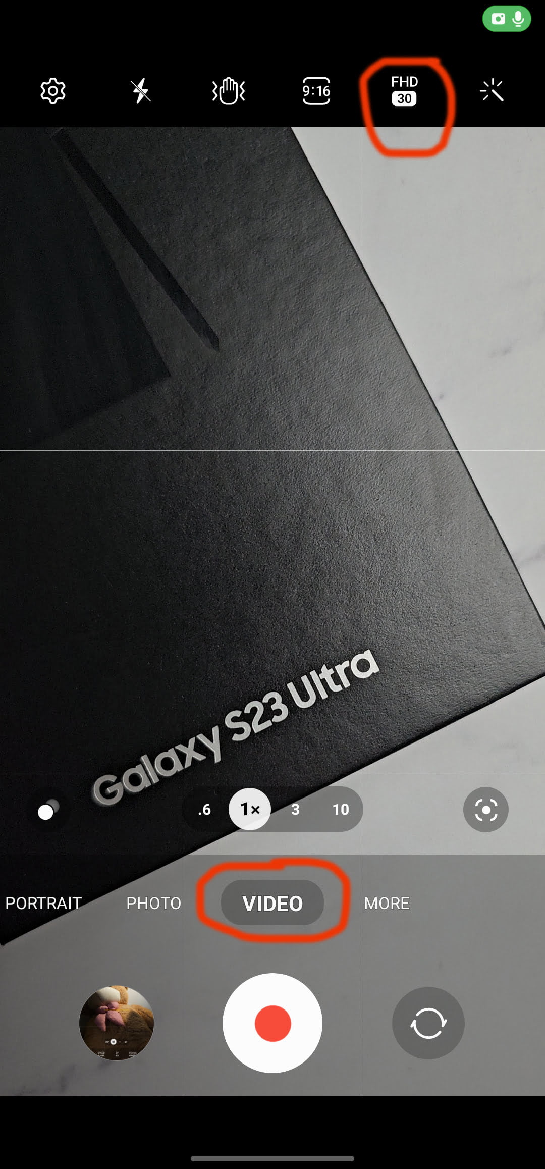 2. Select Video mode by tapping the word “video” or swiping over to it.