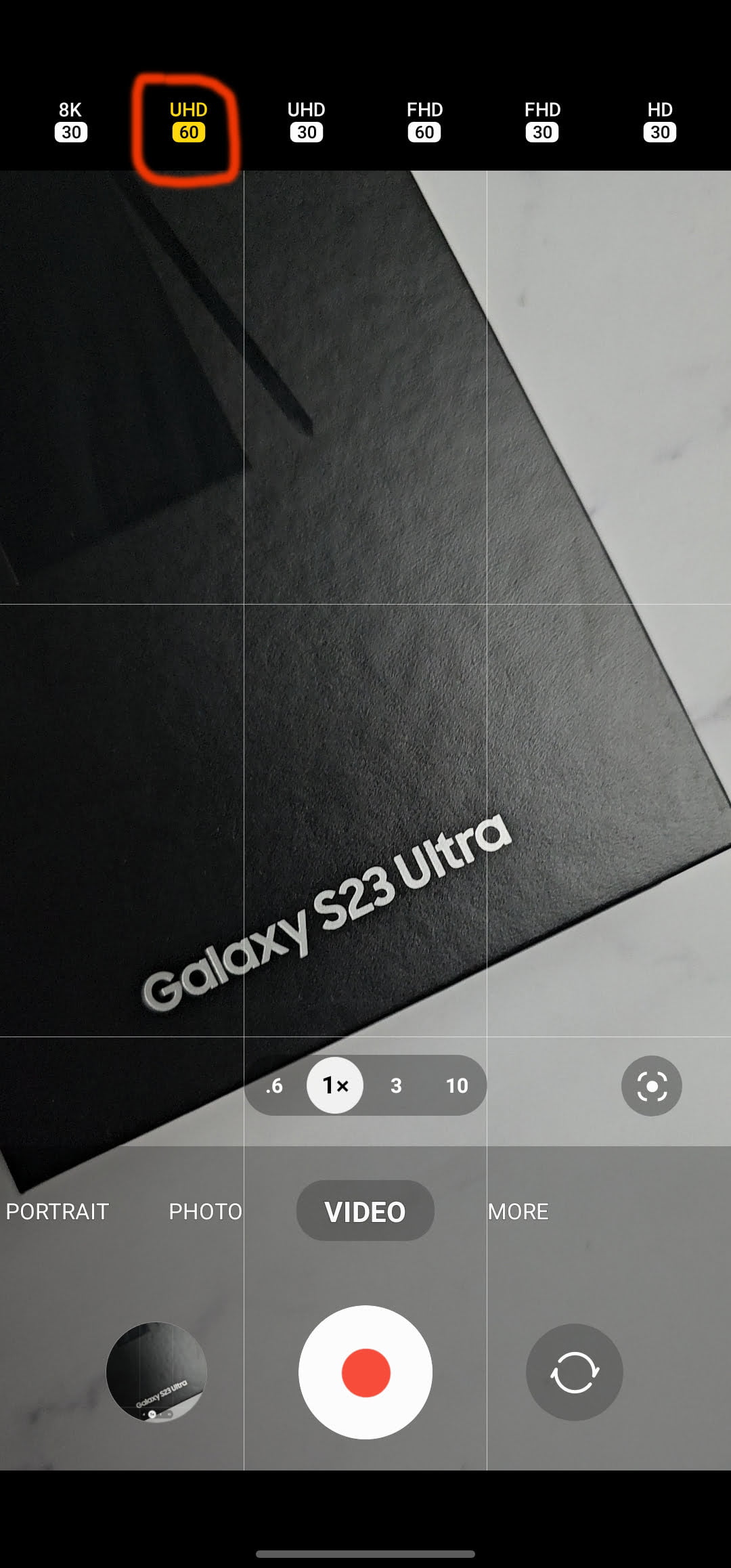 5. For smoother video, select UHD 60 to record in 4K resolution at 60FPS. (You can also choose to record in 8K too)