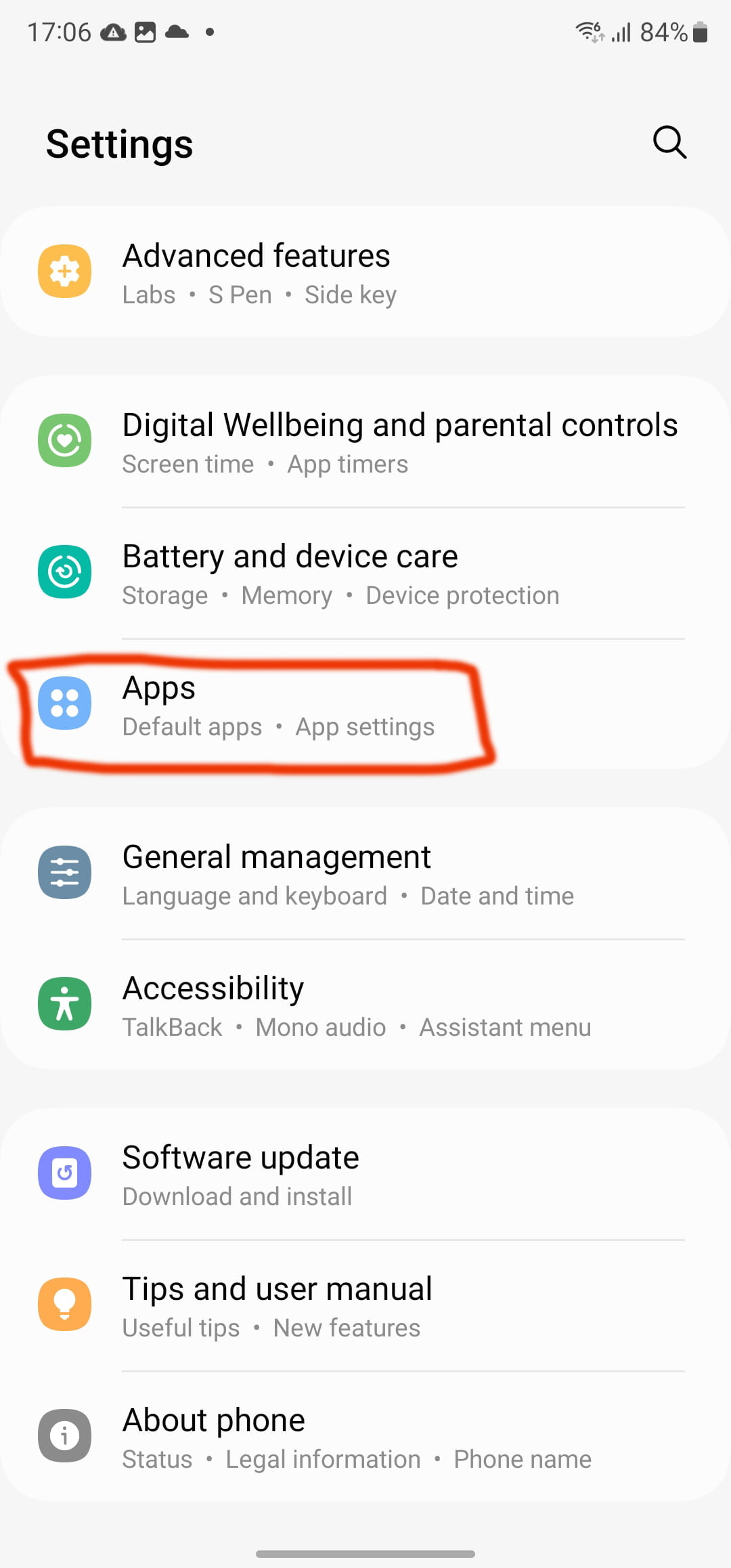 2. Scroll down and select apps from the list.