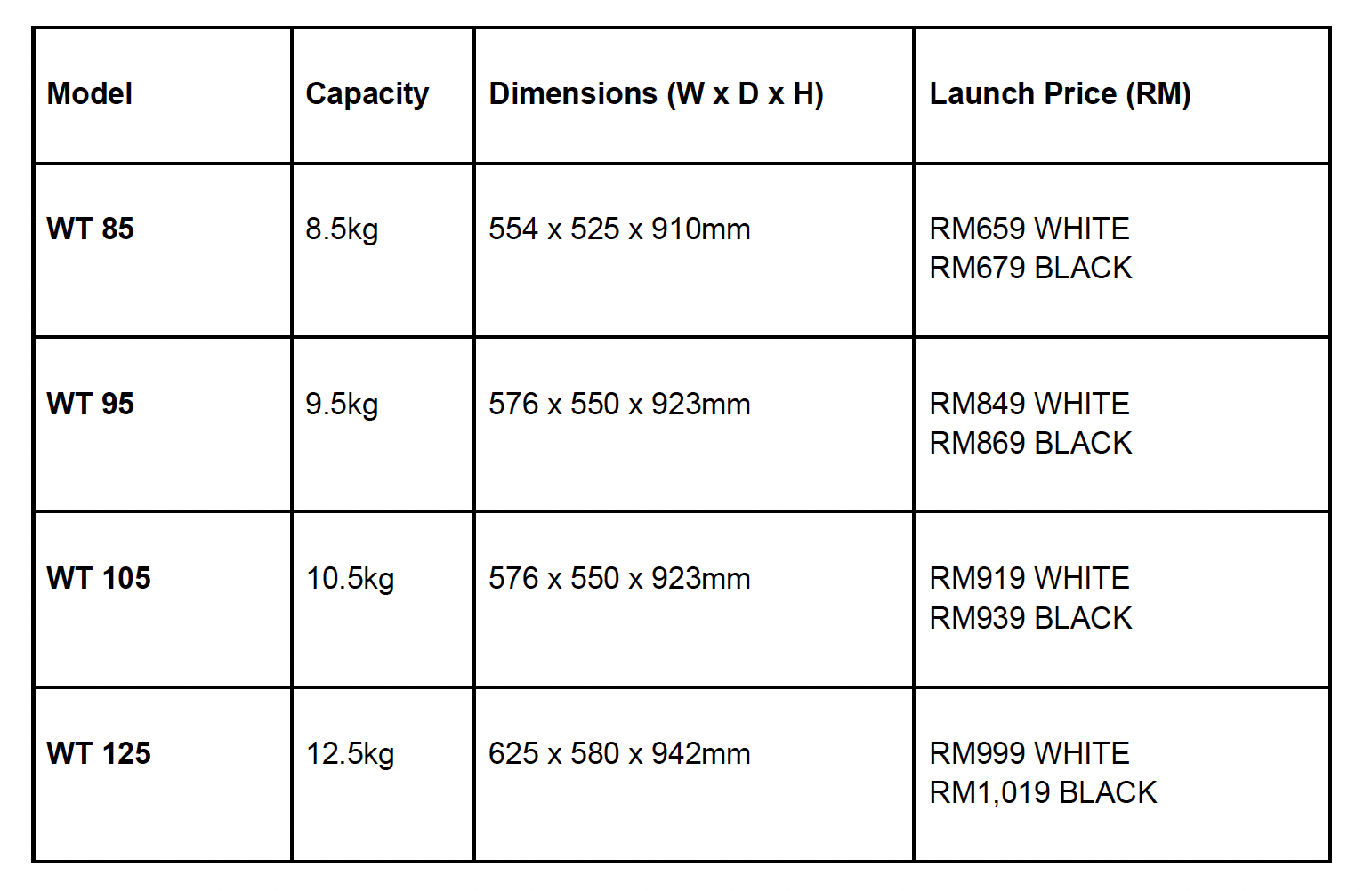 The PRISM+ Typhoon Top Load Washer, available in 8.5kg, 9.5kg, 10.5kg, and 12.5kg, is designed to deliver dependable everyday washing with a focus on convenience, ease of use, and practical efficiency. Built for households that need reliable performance without complicated controls, the Typhoon series offers straightforward functionality supported by smart load detection, intuitive wash cycles, and consistently clean results. Designed with Malaysian families in mind, the Typhoon Washer enhances everyday laundry routines through thoughtful engineering that addresses common pain points—such as detergent residue, imbalanced loads, and drum odours. The washer’s improved water distribution, residue-free dosing system, and load-balancing technology work together to deliver cleaner washes, quieter operation, and gentler fabric handling. From quick weekday washes to larger weekend loads, the Typhoon series provides a dependable solution that keeps laundry simple, efficient, and hassle-free. The Typhoon Washer starts at just RM 659 for the 8.5kg model.