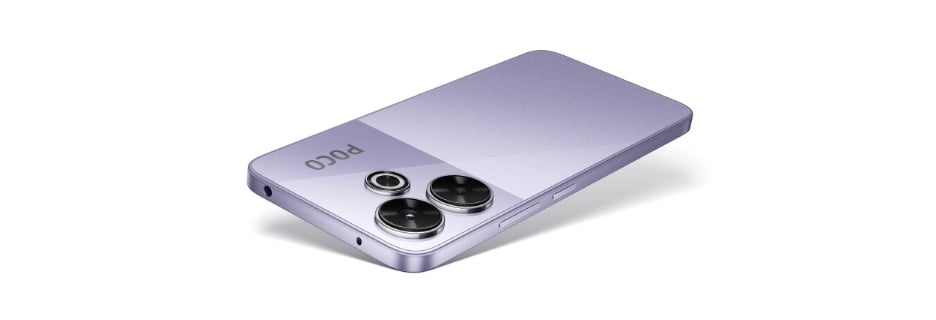The POCO M6 features a sleek glass back panel, offering flagship-grade elegance in Black, Purple, and Silver. At just 8.3mm thick, it is slim and lightweight. The device is IP53-certified for resistance to wet weather and spills.