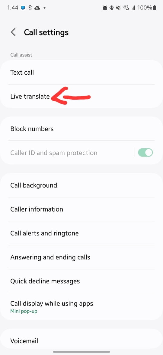 2. Select Call Assist > Live Translate