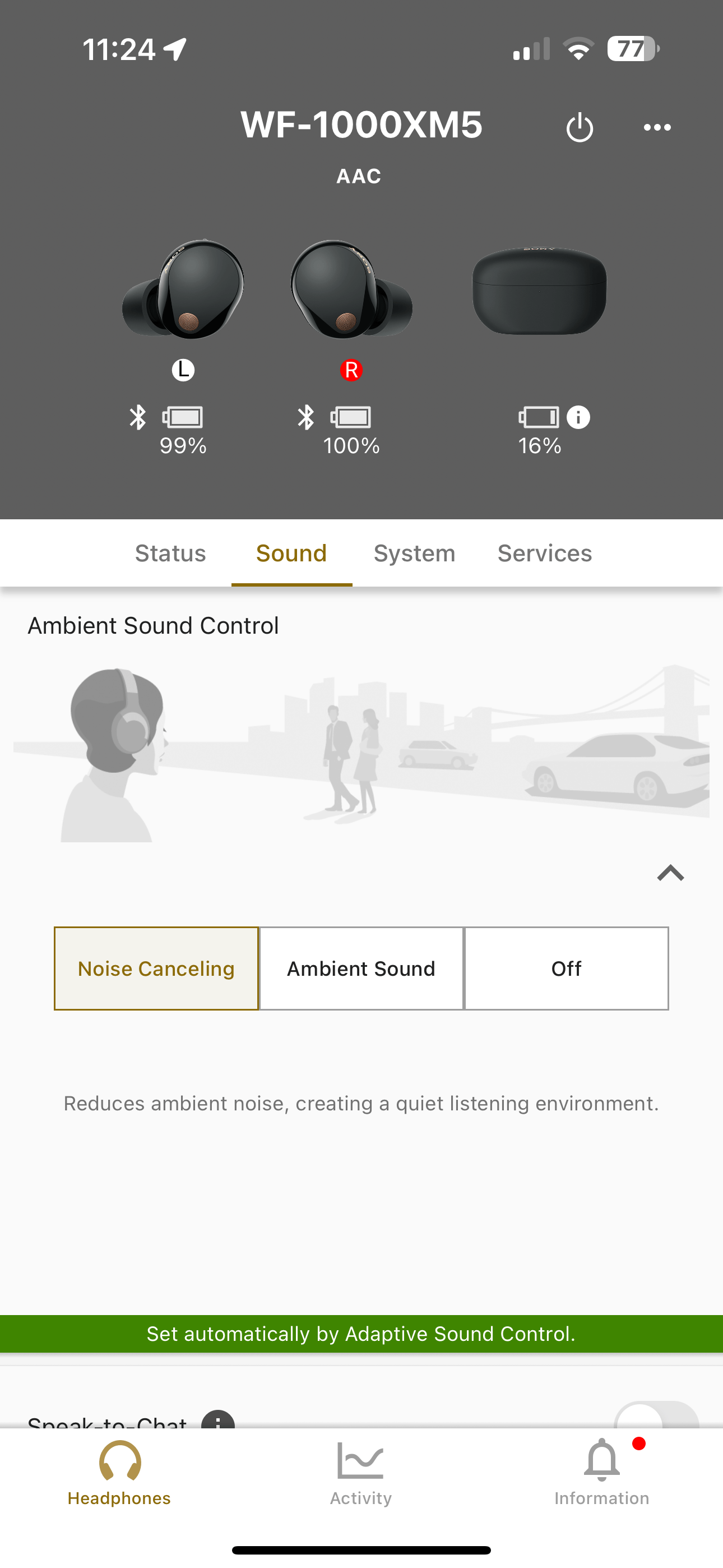 The WF-1000XM5 made the sounds from a nearby performer quieter, and it reduced crowd noise and high-pitched sounds. It worked the same way on buses and trains – wind noise was much less. There’s also a mode where you can hear outside sounds, and it’s clear and natural.