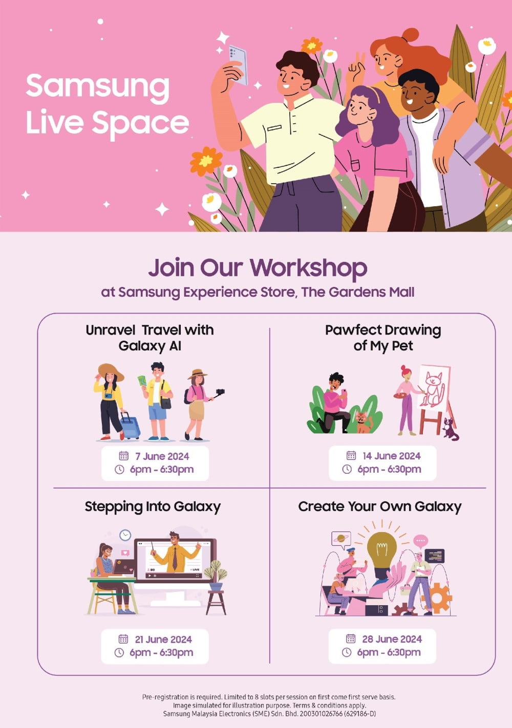 Don’t miss out on this unique chance to express yourself creatively with technology! Interested individuals can secure their spot by visiting our website at https://www.samsung.com/my/samsung-experience-store/livespace/. Do note that the slot are limited, so make sure to book early! We look forward to seeing you there!